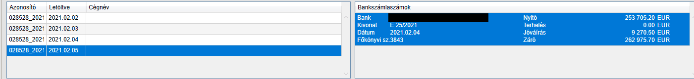 Az első kivonat beolvasásakor, a képernyő jobb felső sarkában lévő kivonat adatokra kattintva tudunk főkönyvi számot és számlatörténetekhez kivonat sorszámot adni…azok ugyanis nem tartalmaznak kivonat sorszámot. Ezt csak egyszer kell megtenni, ha lesz véglegesített kivonatunk és így bankszámlaszámunk az adott főkönyvi számhoz, akkor már párosítja a konvertáló a kettőt.